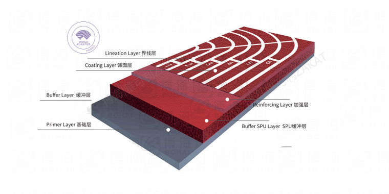 由微發(fā)泡閉孔技術(shù)的聚氨酯底膠鋪設(shè)而成,為世界田徑(國際田聯(lián))認可推薦為各大型國際賽事運動員競賽和訓(xùn)練專用場地類型,耐高低溫、沖擊吸收。
