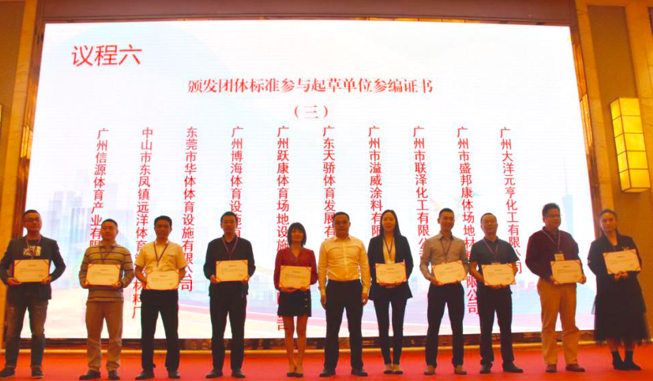 2020年11月24日,廣州市質(zhì)量強市工作領(lǐng)導(dǎo)小組辦公室牽頭舉行的運動場地合成材料面層產(chǎn)品質(zhì)量提升工作成果暨團體標準發(fā)布會在番禺美麗豪酒店召開。廣東省體育設(shè)施制造商協(xié)會承辦,廣州博海體育設(shè)施有限公司等企業(yè)代表出席了大會。